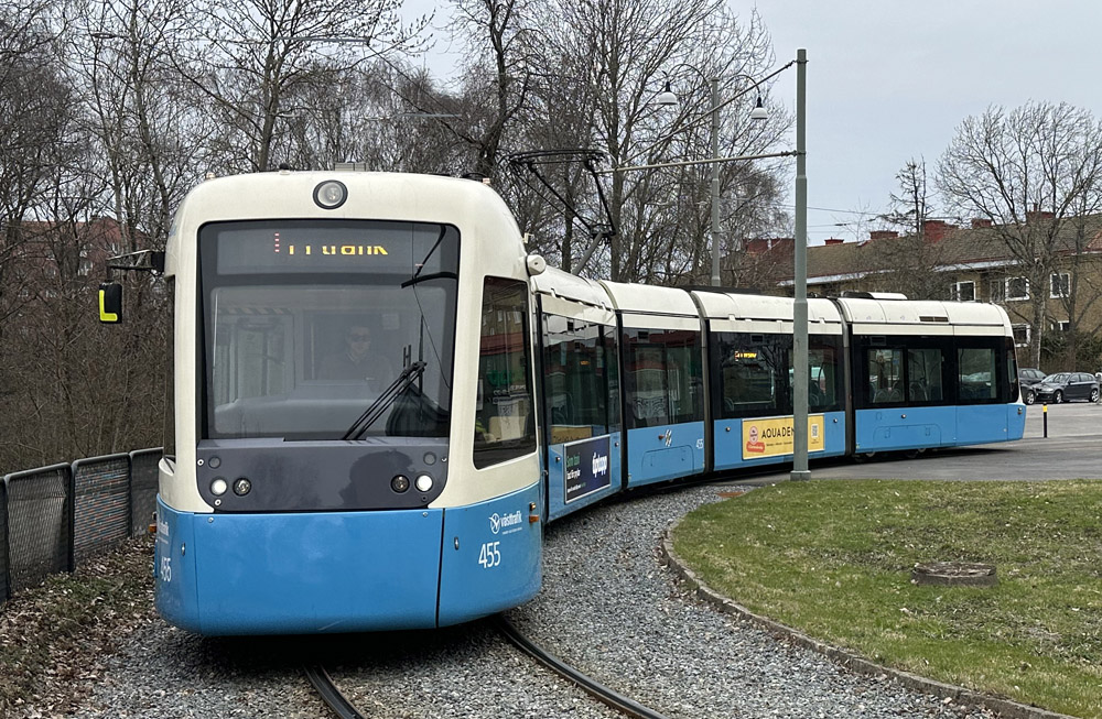 när spårvagnen med beteckningen M32 tar sig runt vändslingan